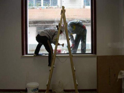 3、玻璃清洗:先用毛擦沾上稀释后的玻璃水溶液,均匀的从上到下涂抹玻璃,污渍严重的地方多涂抹几次,然后用玻璃刮刀从上到下刮干净,再用干毛巾擦净框户上留下的水痕,玻璃上的水痕用机皮擦拭干净。着重之处:框缝吸尘,擦拭。